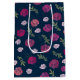 Pretty Pink & Purple Floral Roses Leaves Blue Medium Gift Bag
