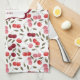 Pretty Pink & Red Cherry Pattern | Monogram Tea Towel