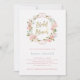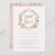 This beautiful bridal brunch invitation features a wreath of lovely pink watercolor roses with green leaves and faux rose gold accents, and faux gold script in the centre. The back of the card is a soft pink colour with matching floral bouquets in the corners.