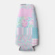 A pretty and feminine Bottle Cooler, with a faux patchwork pattern of Lipstick Pink Roses and tiny White Butterflies on a Turquoise Blue background, teamed with matching Polka Dots, Check Ginghams and Stripes. Part of the Posh & Painterly 'Summer Days' collection. (This pattern can be adjusted to fit any Cooler)