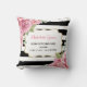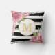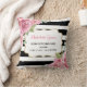Paris-inspired throw pillow featuring lovely watercolor pink roses and black & white striped background