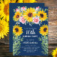 Cute and stylish boho-style yellow sunflowers and pink roses on navy blue 16th birthday party invitation for girls. The back of this beautiful card has a navy blue background to match the front. Text is customisable for any event you are planning. Contact me if you need help customising your card for your special occasion.