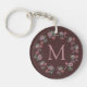 Pretty Pink Roses Wreath Monogram Burgundy Key Ring