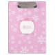 Usher in the winter season with an eye catching clipboard. This colour theme caught my eye because it reminded of the excitement and wonder of winter while adding a dreamlike quality. Unlock your imagination with this lovely clipboard. Featuring a soft pink background with lovely white snowflakes, you can personalise your name within a pink label. Purchase your very own clipboard today.
