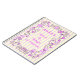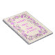 This sweet notebook has a hand drawn style frame with sweets, hearts and stars around the edge. The text can be personalised to suit whatever you need. It's on a background of lemon and pink stripes with pretty pink details.