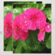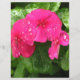 Pretty dew sprinkled pink periwinkle flowers blooming in Spring garden. Macro photo shot taken 2010