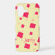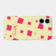 This fun design is made of big hot pink square shapes and little light pink square shapes that resemble confetti falling with a creamy banana taffy yellow background and a sample name in a super cute pink font. This is perfect for a girl's first iphone!