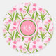 Pretty Pink Tulip Floral Flowers Leaves Monogram Classic Round Sticker