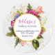 Personalised business stickers. Designed with a pretty watercolor design. A floral arrangement of many different varieties of flowers in red, pink and white colours, and lots of leafy green foliage. A frame layered over top with a faux-gold-foil border. Classy and elegant design. An off-white marble pattern background.