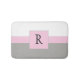 This pretty pink, white, and grey monogram bath mat features a white background at the top with a grey background at the bottom. There is a pink box in the centre. Monogram your bath mat using a variety of colours. Purchase yours today!
