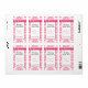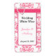Chic pink and white damask mini wedding wine labels ready for you to personalise with your own information. A pink edged white text area, in the middle has pink and black custom text and graphics of a pink ribbon, with a silver tone heart, decorates the top. Great for your wedding reception or your home made wines.