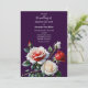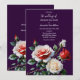 Elegant dark pretty red and pink white rose on dark purple background floral cottage core wedding Invitation