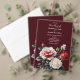 Elegant dark pretty red and pink white rose on dark maroon red background floral cottage core wedding Invitation