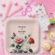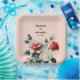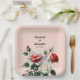 Elegant pretty red and pink white rose floral cottage core wedding Paper Plates