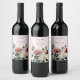 Elegant dark pretty red and pink white rose floral cottage core wedding Wine Label