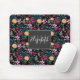Pretty Pink & Yellow Small Floral Black Design Mouse Pad