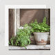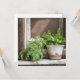 Blank card. Pretty plants sitting on a rustic wood window ledge ai art.