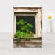 Birthday card. Pretty plants sitting on a rustic wood window ledge ai art.