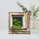 Blank card. Pretty plants sitting on a rustic wood window ledge ai art.