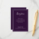 A pretty plum and silver design adorns this wedding reception enclosure card. Using a plum coloured background, the silver font makes and elegant complement. Easy to customise, just use the templates provided. Shop matching items in the "Personalised Purple and Silver Wedding" Collection.