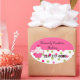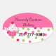 Pretty oval stickers, with a colourful polka dot background on the bottom half, and a solid pink, on the top half of the stickers. Cute graphics of a cupcake decorates the left side . Text in black is fully customisable for your business. Great for bakeries, home bakers, and cake decorators, to use as seals to cake boxes and other packaging. Personalise for your business.