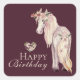 Pretty Pony and Flowers Horse Happy Birthday Square Sticker