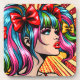 Colourful cute pop art comic style girl with pigtails and bows in her hair.