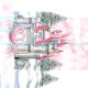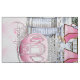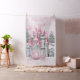 Princess photo booth backdrop with pretty pink castle and beautiful royal princess carriage on a pink bokeh cloud background. You can add text to personalise for your event.