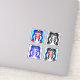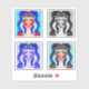 An image of a beautiful pretty princess in bright colours, wearing a golden crown, created by an AI, then edited to include a black & white version, a blue version, and a dark red and teal version of the cartoon image in a 4 sticker set!