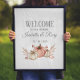 Beautiful, modern and elegant poster wedding signs for weddings from late Summer to late Autumn, features a pretty watercolor Fall pumpkin harvest bouquet with fully customisable text in complementary grey fonts. Add the couples wedding / engagement / reception details