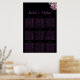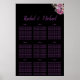 A beautiful seating chart, there is a black background with lovely purple font and floral graphic. In the centre is the couple's name followed by the couple's name elegantly scripted in purple cursive lettering. Underneath are templates for inserting guests names at their assigned tables. Shop the whole collection for matching items.