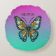 Pretty Purple and Teal Butterfly Personalised Round Cushion