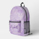 A backpack featuring a pretty purple bokeh design, easily make it one of a kind by personalising your name. Make it as creative as you want by adding photos, graphics , and other elements to the design. Order your personalised backpack today!