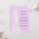 A pretty lace wedding dress accents this bridal shower invitation on a soft, purple background. This invitation is shown on the basic paper; however, I recommend the weight and texture of the linen paper.