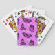 This deck of colourful butterfly themed playing cards features the images of three different pink / purple butterflies with black and white markings patterned over a doodle flower outline pattern on a customisable pink background - by katz_d_zynes