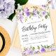 Honour a special woman with this elegant and feminine 70th Birthday party invitation. The birthday celebration details are surrounded top and bottom purple floral borders. The floral elements are nestled in deep green leaves. While it is a traditional design, the open and airy botanical foliage and text give it a contemporary vibe. This item is part of the Rustic Purple Floral Botanical 70th Birthday collection.