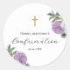 Pretty Purple Floral with Cross Confirmation Classic Round Sticker