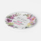 Pretty and girly purple, pink and green floral watercolor wreath "thank you" paper plates for a baby shower. These whimsical paper plates have a white background and elegant dark grey and hot pink text. Personalise by adding your own name and baby shower date. You can even change the text colour and font style using the customise option.