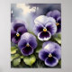 Pretty purple pansies watercolor painting poster