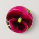 Round, pin-back button that features the photo image of a pretty, purple/magenta coloured Pansy flower with yellow centre. A lovely, floral design! Fun to wear on apparel, handbags, hats, straps, etc.