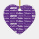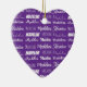 A pretty purple personalized heart shaped Christmas ornament gift decorated in nine different fonts spelling your name in white. Cute customizable present with beautiful cursive typography.