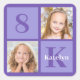 Cool 2 photo square birthday party sticker in pretty purple for a little girl or toddler. Celebrate your child's birthday with cute photographs of them on these kids celebration stickers. Add their name and age.