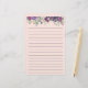 Cute and girly purple and pink floral and sage green leaves on pink personal stationery with lines.