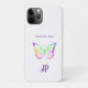 Pretty Purple Spread Your Wings Butterfly iPhone 11 Pro Case with Initial Placement.
