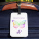 Pretty Purple Spread Your Wings Butterfly Luggage Tag with Initial Placement.
