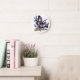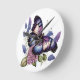 PRETTY PURPLE WATERCOLOR BUTTERFLIES AND FLOWERS ROUND CLOCK