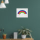 A cute design of light blue, dark blue, purple, pink, red, orange, green, yellow, light green, and dark green making up a rainbow with fluffy white clouds.
