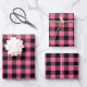Pretty Raspberry Pink And Black Buffalo Plaid Wrapping Paper Sheet