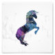 A rearing horse silhouette overlaid with a gorgeous 'painted' look done in abstract blues and purples, against a rustic weathered white wood grain background.