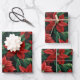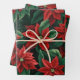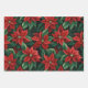 Pretty Red and Green Poinsettias Digital Art Wrapping Paper Sheet